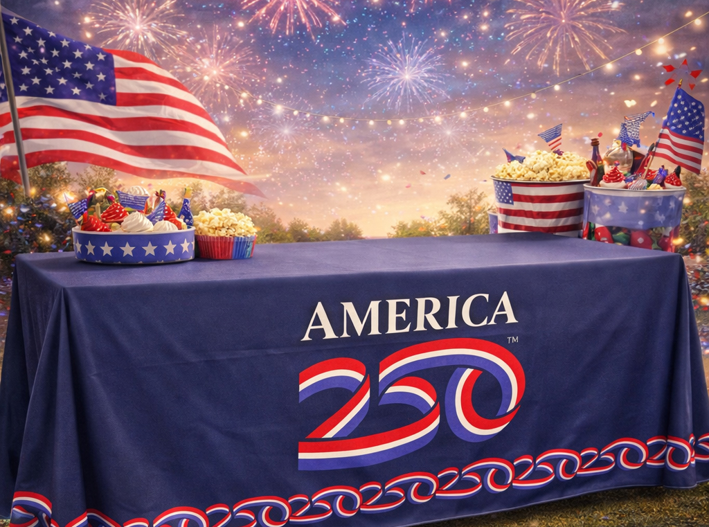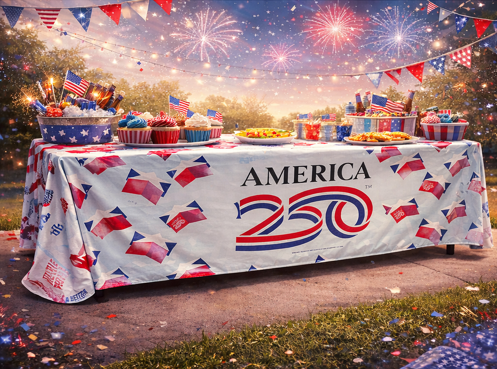 Whether used on its own or paired with America250™ banners, backdrops, and signage, the America250™ Table Cover helps unify your space and reinforce your participation in this historic national celebration.